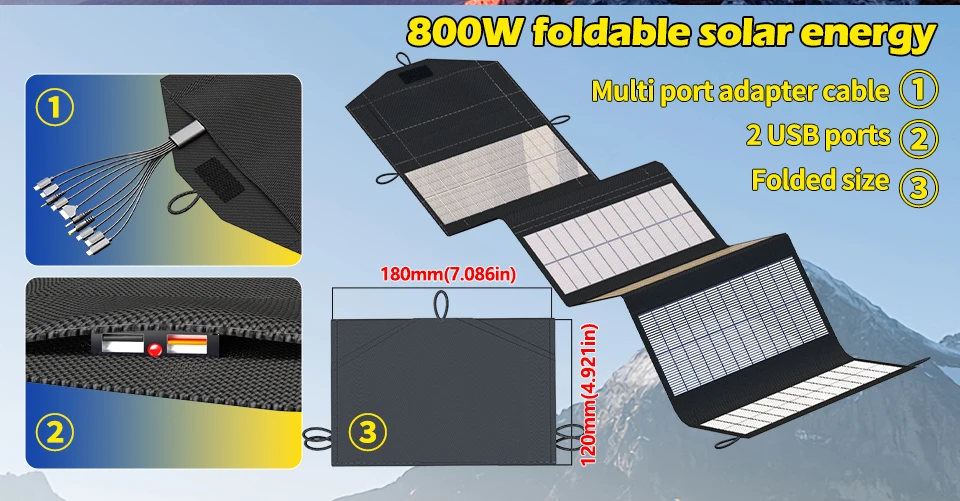 20W-800W Portable Polysilicon Solar Panel Charger USB 5V DC Foldable Solar Panel For Phone Charge Power Bank For Hiking Camping